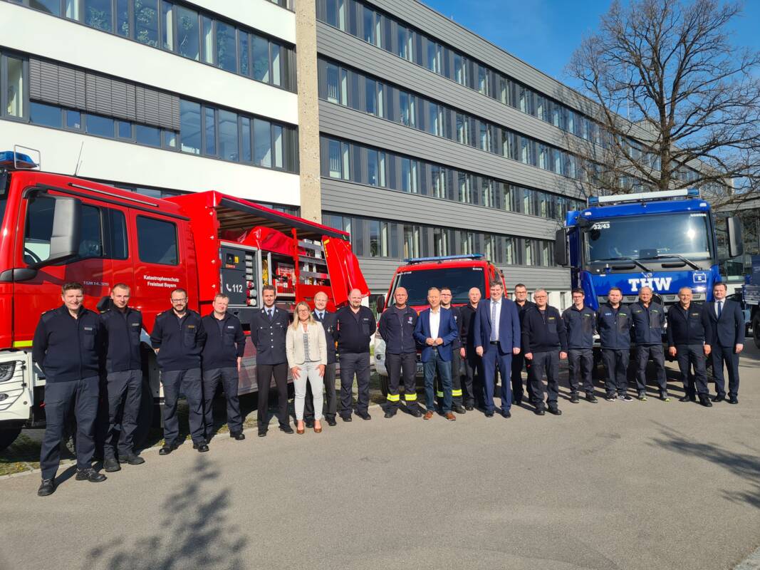 Müller dankte den Feuerwehren für die Übernahme der staatseigenen Katastrophenschutzfahrzeuge, ebenso dem THW und allen anderen im Katastrophenschutz mitwirkenden Hilfsorganisationen und Stellen für ihren großartigen Einsatz, gerade in der heutigen krisengeschüttelten Zeit.