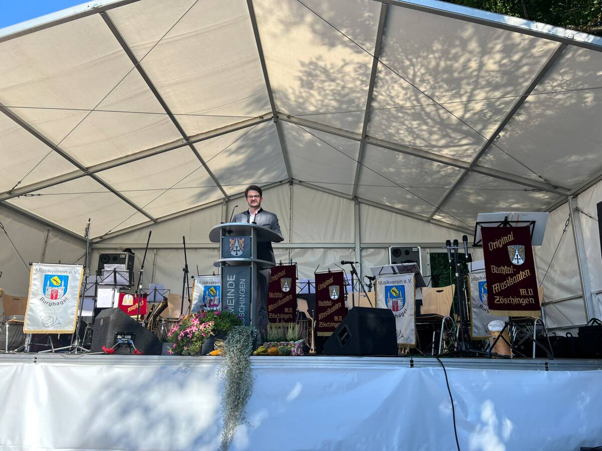 Gefeiert wurde die Verkehrsfreigabe mit einem Wortgottesdienst am Vormittag in der Pfarrkirche St. Martin in Zöschingen. Anschließend segnete Pfarrer Noah Ijabani Lucas die Straße und gab gemeinsam mit den politischen Vertretern den Verkehr frei. Der Musikverein Zöschingen umrahmte den Akt feierlich und sorgte auch, gemeinsam mit dem Reitverein und der Freiwilligen Feuerwehr, für das leibliche Wohl.
